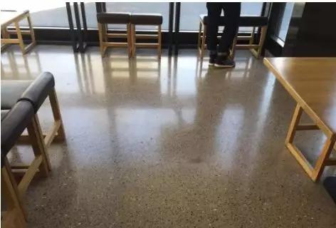 2.水磨石地坪:易起灰尘、春季易回潮、水份不易散发、行走响声大、 油脂易渗入、不易清洁,必须打蜡保养。