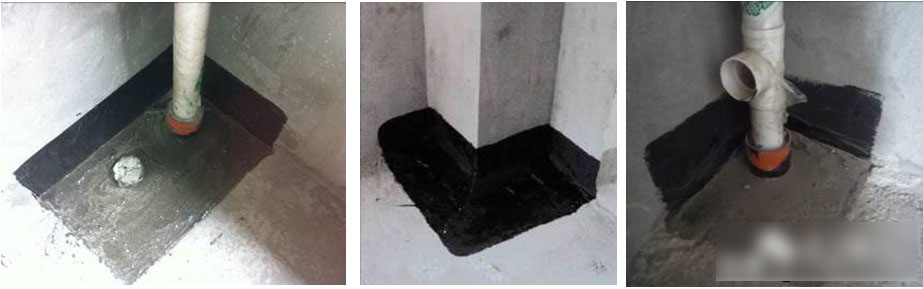 给排水安装管道根、地漏局部防水处理到位;1、管道、管井、烟道周边作200mm宽、1.5mm厚聚合物水泥(JSⅡ型)防水涂料,分三遍涂刷,泛水高度200mm;2、 生活阳台满做1.5mm厚聚合物水泥(JSⅡ型)防水涂料,分三遍涂刷,泛水高度为装修完成面以上100mm。防水层施工完毕后应做关水或淋水试验,并对甲方监理进行报验。
