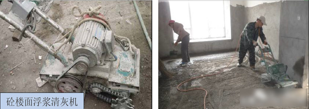 采用楼面专用“凿毛机”将凝结在楼地面上的混凝土、砂浆清理松动;将楼层打扫干净。