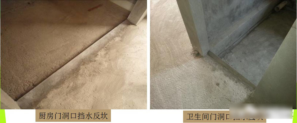 2)卫生间门洞口、厨房门洞口、推拉门等门洞口地面不做拉毛处理;