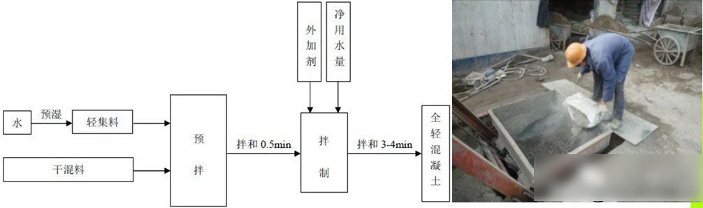 对强度低而易破碎的轻骨料,应严格控制混凝土的搅拌时间,塌落度不宜大于30mm。全轻混凝土拌合物在运输中应采取措施减少塌落度损失和防止离析。当产生拌合物稠度损失或离析计较重时,浇筑前应采取二次拌合,但不得二次加水。全轻混凝土拌合物从搅拌机卸料起到浇入模内止的延续时间不宜超过45min。