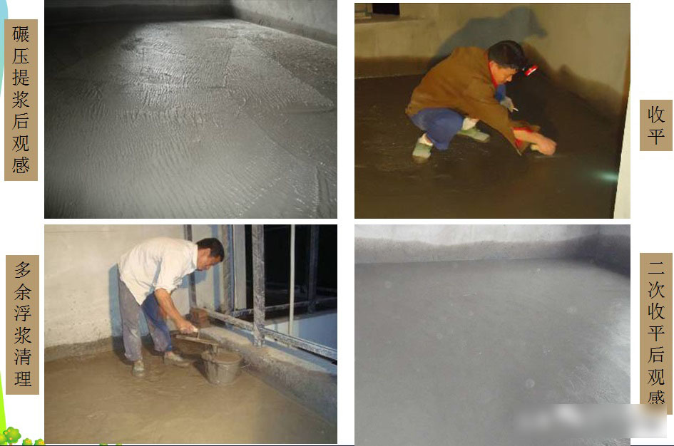 3) 禁止使用干水泥收面,避免造成表层龟裂。