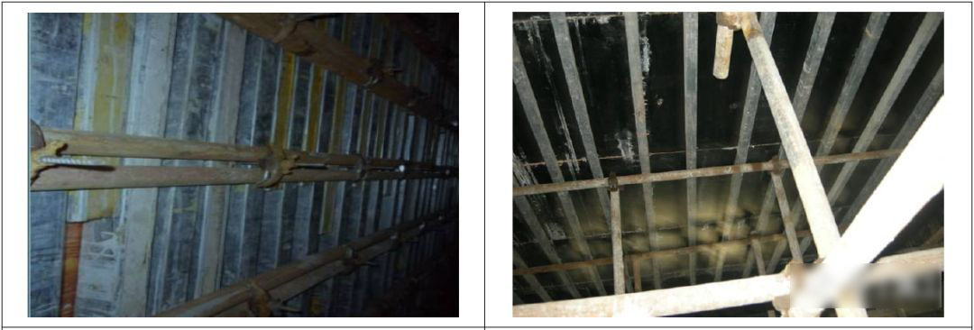 6.3 楼板模板支撑木枋间距≰200mm ;木枋端部离梁侧模板≰150mm;支撑木枋不得在同跨立杆搭接。