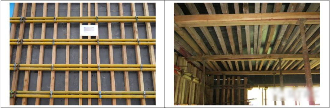 8.1 为了避免梁与墙模板交接处出现错位,影响平整度,梁侧面水平背枋应伸过梁与墙柱模板接缝处10cm-15cm,剪力墙侧面阳角背枋在梁底位臵截断。