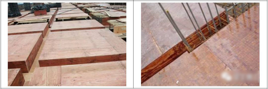 1.1 墙、柱、梁、板使用厚度不低于15mm厚的胶合板,板胶合层应层次分明、密实、无孔洞。