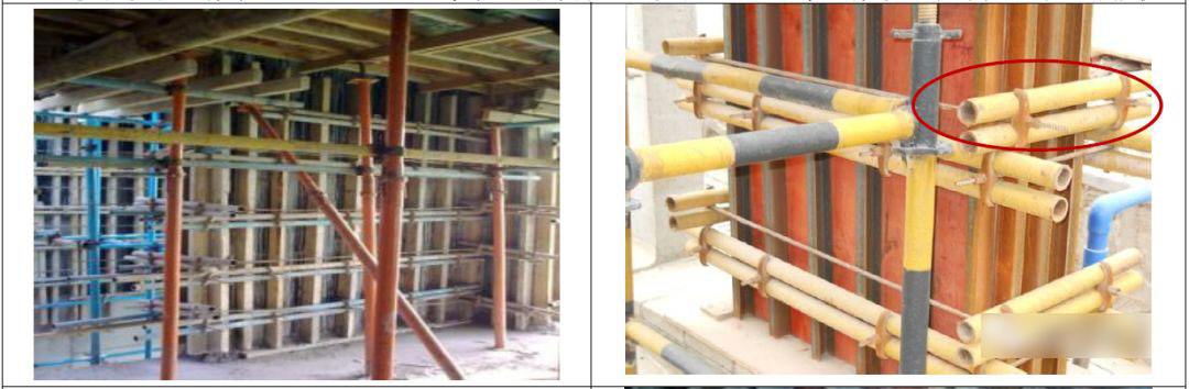 7.5 加固螺杆处必须设臵内撑并固定牢固,加固时应用力适当,避免模板内嵌咬肉。