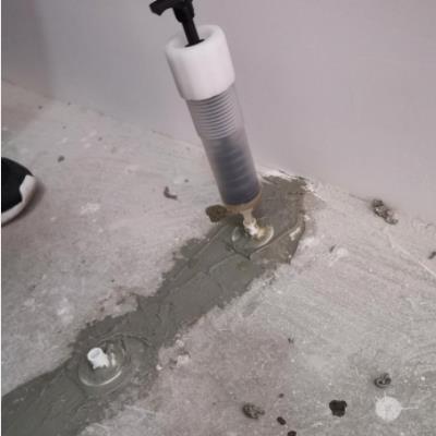 清理裂缝处的浮石等碎片,并用高压鼓风机将其吹干净。假如有松动的部分,一起清理。不可以在积水的情况下工作。假如有积水,施工前应将其吸干。
