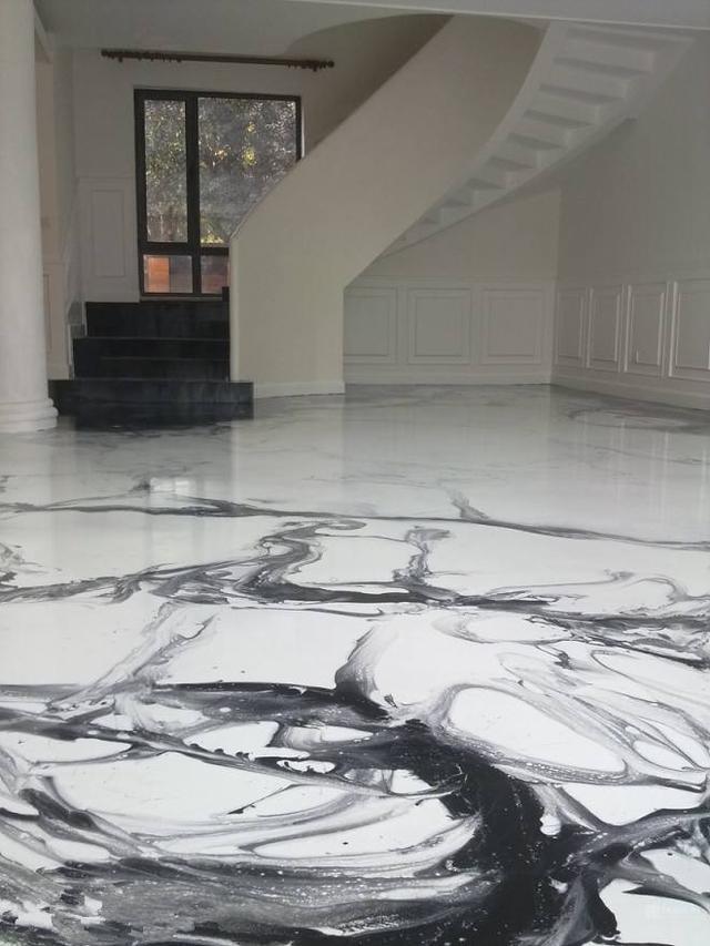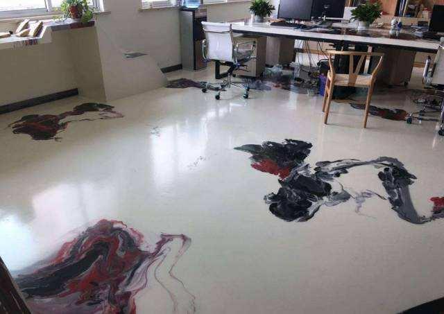 1、基础地面上先用环氧找平,等找平层干了之后,在上面做水墨流淌风格艺术地坪。