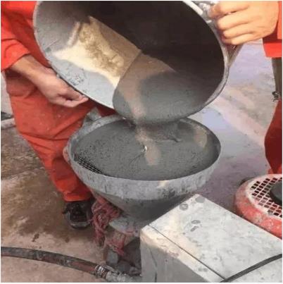 4、将搅拌均匀的灌浆料从一个方向灌入灌浆部位。必要时可借助竹条或钢钎导流,可适当振捣或轻轻敲模板。