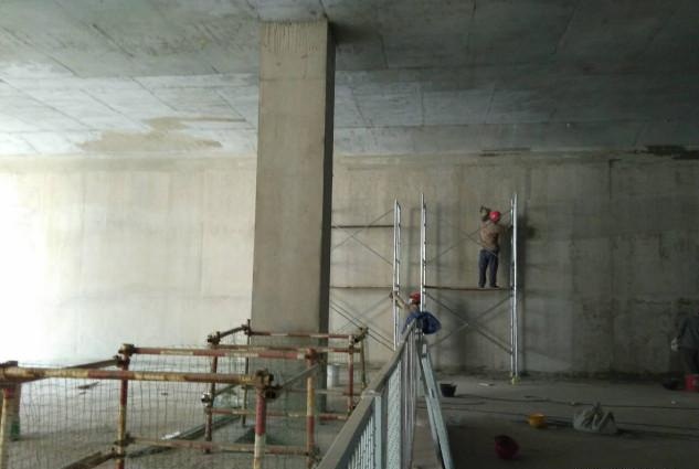 2、除尘:几层表面存在粉尘不利于灰浆粘贴,故使用吸尘器将混凝土构件表面灰尘清理干净。