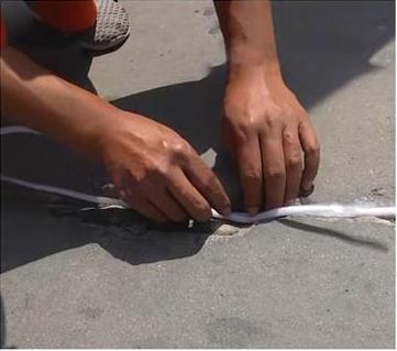 主要针对水泥路面的裂缝进行及时灌注修补,该产品只粘路面,不粘轮胎,雨前施工雨后不会剥离,并保持弹性。
