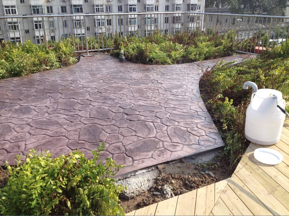 也正因为压花地坪的纹理和基层是浑然一体的,所以压根不用担心会出现松动、破裂的现象。像有些地砖等铺庭院,时间一久还得去这边补补,那边换换。表面的凹凸感也能增加一定的防滑性。